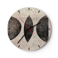 Wandklok - Klok - Zwarte geometrische vormen op een beige achtergrond met een linnenstructuur. - 30x30cm - etnische abstractie - Moderne wanddecoratie voor woonkamer, keuken en slaapkamer ARTTOR