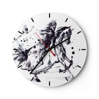 Wandklok - Klok - Zwart-witte aquarel ruiter - 30x30cm - Zwarte ridder - Moderne wanddecoratie voor woonkamer, keuken en slaapkamer ARTTOR