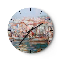 Wandklok - Klok - Een pastelkleurige haven met boten tegen de achtergrond van pittoreske gebouwen - 30x30cm - Pastel vakantie - Moderne wanddecoratie voor woonkamer, keuken en slaapkamer ARTTOR