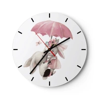 Wandklok - Klok - Twee konijnen onder een roze paraplu met bloemenversieringen - 30x30cm - Dit is liefde - Moderne wanddecoratie voor woonkamer, keuken en slaapkamer ARTTOR