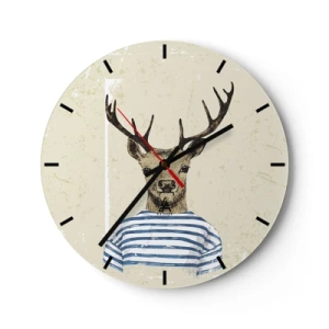 Wandklok - Klok - Een cartoonhert in gestreepte kleding tegen een beige achtergrond - 30x30cm - Omdat ik van gestreepte t-shirts hou! - Moderne wanddecoratie voor woonkamer, keuken en slaapkamer ARTTOR