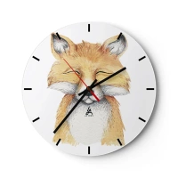 Wandklok - Klok - Een tekening van een lachende vos op een witte achtergrond - 30x30cm - Vossenstemmingen - Moderne wanddecoratie voor woonkamer, keuken en slaapkamer ARTTOR
