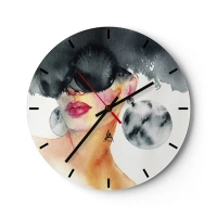 Wandklok - Klok - Portret van een vrouw met een bril en grote oorbellen, aquarel - 30x30cm - Het geheim van elegantie - Moderne wanddecoratie voor woonkamer, keuken en slaapkamer ARTTOR
