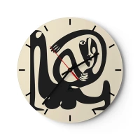 Wandklok - Klok - Een zwarte figuur in een abstracte stijl op een crèmekleurige achtergrond - 30x30cm - Bijna Picasso - Moderne wanddecoratie voor woonkamer, keuken en slaapkamer ARTTOR