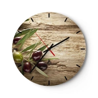 Wandklok - Klok - Olijftak op een houten achtergrond - 30x30cm - Rechtstreeks uit de natuur - Moderne wanddecoratie voor woonkamer, keuken en slaapkamer ARTTOR