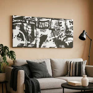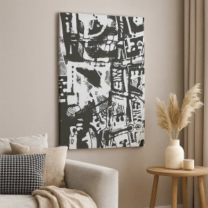 - Dit schilderij toont een abstract, monochroom patroon in retrostijl. Deze moderne wanddecoratie combineert op elegante wijze minimalisme en expressiviteit.