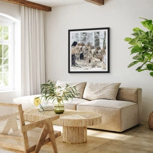 - Deze poster toont een groep wolven in een winterbos. Deze subtiele compositie in natuurlijke kleuren past perfect in elk interieur.