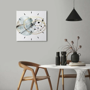 Met de "In the Embraces of Space" wandklok brengt u moderniteit, artistieke expressie en ruimtelijke elegantie in uw interieur. Het formaat van 30x30 cm en de subtiele compositie maken de klok tot een unieke decoratie voor elke moderne ruimte.