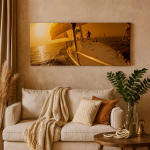 Het canvas wordt over het frame gespannen. De zijkanten en randen zijn bedrukt en zetten het beeld voort. De schilderij is klaar om aan de muur te hangen. Elk product heeft een hanger aan het frame en een montagekit (schroef + pin).