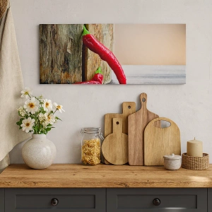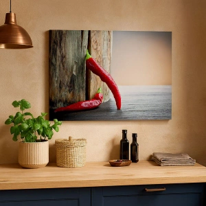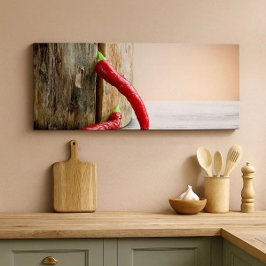 "Red hot chili peppers" is een origineel canvas schilderij met twee rode chilipepers op een rustieke houten achtergrond. Het intense rood van de pepers contrasteert met de natuurlijke tinten van het hout, wat het schilderij een uniek en warm karakter geeft. Dit motief past perfect in een keuken of eetkamer en voegt frisheid en energie toe aan het interieur.