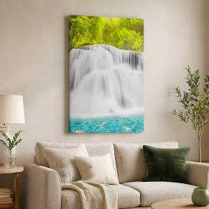Schilderen op canvas - Een schuimige waterval van groen naar azuurblauw - 45x80 cm