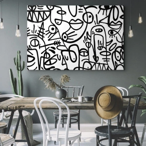 Het canvas wordt over het frame gespannen. De zijkanten en randen zijn bedrukt en zetten het beeld voort. De schilderij is klaar om aan de muur te hangen. Elk product heeft een hanger aan het frame en een montagekit (schroef + pin).