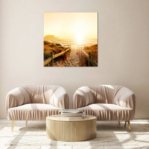 Schilderen op glas - Over het duin, richting de zon - 50x70 cm