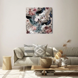 Wandklok - Klok - Pauw en witte vogels tussen bloemen op een beige achtergrond - 30x30cm - In de paleistuin - Moderne wanddecoratie voor woonkamer, keuken en slaapkamer ARTTOR
