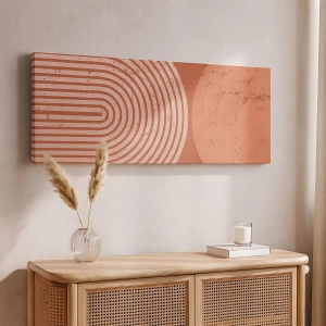 Het retro en door de natuur geïnspireerde motief is perfect voor minimalistische, moderne en Scandinavische interieurs. Geometrische lijnen en warme kleuren benadrukken de verfijning en veelzijdigheid van het schilderij, dat zich gemakkelijk aanpast aan verschillende ruimtes.