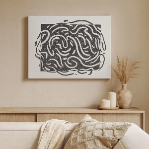 De abstracte aard van het schilderij maakt het een uitstekende keuze voor liefhebbers van hedendaagse kunst en minimalistisch design. De zwart-witmotieven zijn tijdloos en voegen elegantie en klasse toe aan interieurs.