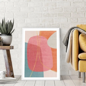 Poster in een witte lijst - Pastelkleurcompositie met gouddraad - 40x40 cm