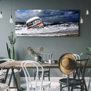 Het canvas wordt over het frame gespannen. De zijkanten en randen zijn bedrukt en zetten het beeld voort. De schilderij is klaar om aan de muur te hangen. Elk product heeft een hanger aan het frame en een montagekit (schroef + pin).