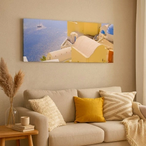 Kies "Grieks landschap in wit en blauw" om een mediterrane sfeer, elegantie en een gevoel van rust aan uw interieur toe te voegen. Dit schilderij voert u mee naar het zonnige Griekenland en inspireert tot reizen.