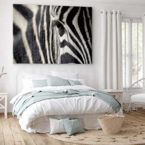 • Dieren, Zebra, Afrika, Zwart en wit, natuur, dieren, Voor op kantoor, voor de studeerkamer, voor de eetkamer, voor de hal, voor de woonkamer, voor de slaapkamer, Wit, zwart, zwart en wit, Panoramisch
