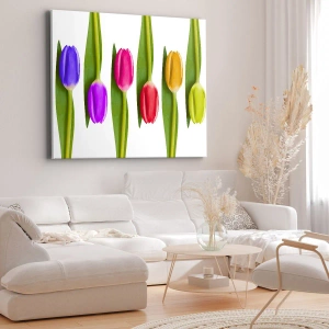 Het canvas wordt over het frame gespannen. De zijkanten en randen zijn bedrukt en zetten het beeld voort. De schilderij is klaar om aan de muur te hangen. Elk product heeft een hanger aan het frame en een montagekit (schroef + pin).