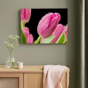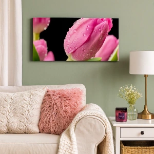 Het canvas wordt over het frame gespannen. De zijkanten en randen zijn bedrukt en zetten het beeld voort. De schilderij is klaar om aan de muur te hangen. Elk product heeft een hanger aan het frame en een montagekit (schroef + pin).