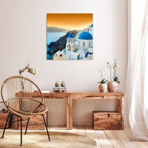 Schilderen op canvas - Santorini - genesteld tegen de rotsen - 40x40 cm