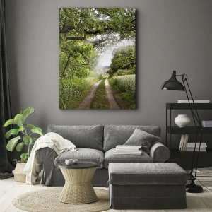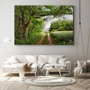 Dit schilderij is een uitstekende keuze voor landschapsliefhebbers en mensen die elementen van de natuur en rust in hun interieur willen brengen. Details zoals delicate lichtstralen, weelderige vegetatie en de heldere structuur van de weg maken dit schilderij tot een uniek decoratief element voor woonkamers, slaapkamers of ontspanningsruimtes.
