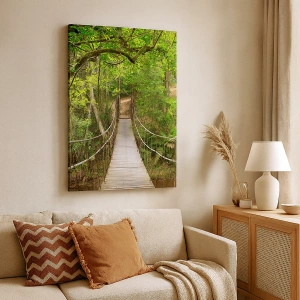 Door te kiezen voor een canvasprint van ARTTOR kiest u voor een decoratie die esthetiek en duurzaamheid combineert. De compositie met een hangende brug tussen het groen geeft uw interieur een sfeer van rust en natuurlijke schoonheid.