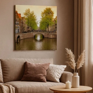Het canvas wordt over het frame gespannen. De zijkanten en randen zijn bedrukt en zetten het beeld voort. De schilderij is klaar om aan de muur te hangen. Elk product heeft een hanger aan het frame en een montagekit (schroef + pin).