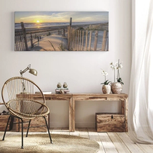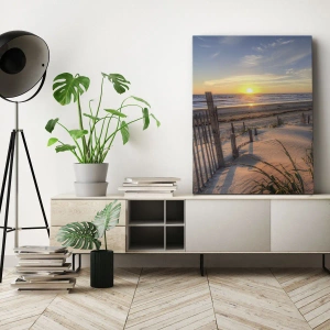 Het canvas wordt over het frame gespannen. De zijkanten en randen zijn bedrukt en zetten het beeld voort. De schilderij is klaar om aan de muur te hangen. Elk product heeft een hanger aan het frame en een montagekit (schroef + pin).