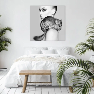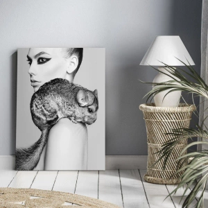 Schilderen op canvas - Dame met een chinchilla - 50x50 cm