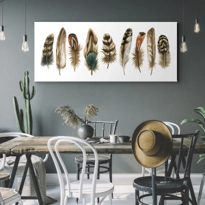 Het canvas wordt over het frame gespannen. De zijkanten en randen zijn bedrukt en zetten het beeld voort. De schilderij is klaar om aan de muur te hangen. Elk product heeft een hanger aan het frame en een montagekit (schroef + pin).
