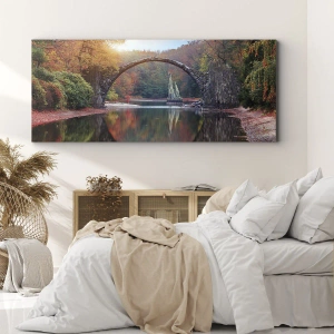 Het canvas wordt over het frame gespannen. De zijkanten en randen zijn bedrukt en zetten het beeld voort. De schilderij is klaar om aan de muur te hangen. Elk product heeft een hanger aan het frame en een montagekit (schroef + pin).