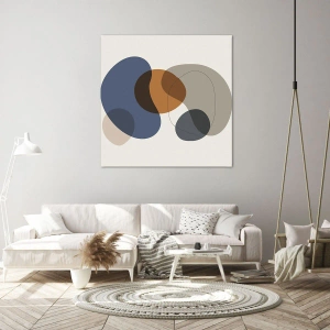 Het schilderij past perfect in een woonkamer, slaapkamer of kantoorruimte en creëert een sfeer van rust en esthetiek. Ovale vormen en een ingetogen kleurenpalet geven de compositie een lichtheid en verfijning, waardoor het een ideale keuze is voor liefhebbers van hedendaagse kunst en eenvoudig design.