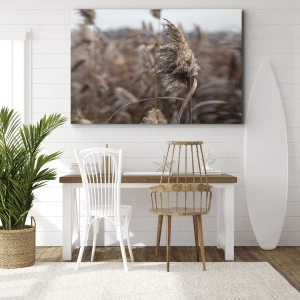 - Dit schilderij toont delicate grassen in beige tinten tegen een natuurlijke achtergrond. Perfect voor interieurs die geïnspireerd zijn door vrede en harmonie. De canvasprint is 70x50 cm groot.