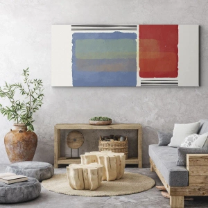 "De Geest en de Letter van de Geometrie" is een modern canvas schilderij van 70x50 cm dat eenvoud combineert met een opvallend geometrisch motief. Het toont kleurblokken en subtiele lijnen, wat een harmonieuze compositie creëert die energie en stijl aan het interieur toevoegt. Dit schilderij past perfect in ruimtes geïnspireerd door minimalisme en modern design.