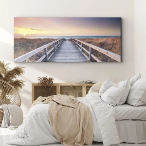 Het canvas wordt over het frame gespannen. De zijkanten en randen zijn bedrukt en zetten het beeld voort. De schilderij is klaar om aan de muur te hangen. Elk product heeft een hanger aan het frame en een montagekit (schroef + pin).