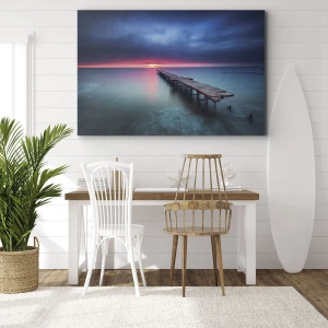 Het canvas wordt over het frame gespannen. De zijkanten en randen zijn bedrukt en zetten het beeld voort. De schilderij is klaar om aan de muur te hangen. Elk product heeft een hanger aan het frame en een montagekit (schroef + pin).