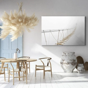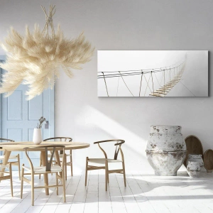 Het canvas wordt over het frame gespannen. De zijkanten en randen zijn bedrukt en zetten het beeld voort. De schilderij is klaar om aan de muur te hangen. Elk product heeft een hanger aan het frame en een montagekit (schroef + pin).