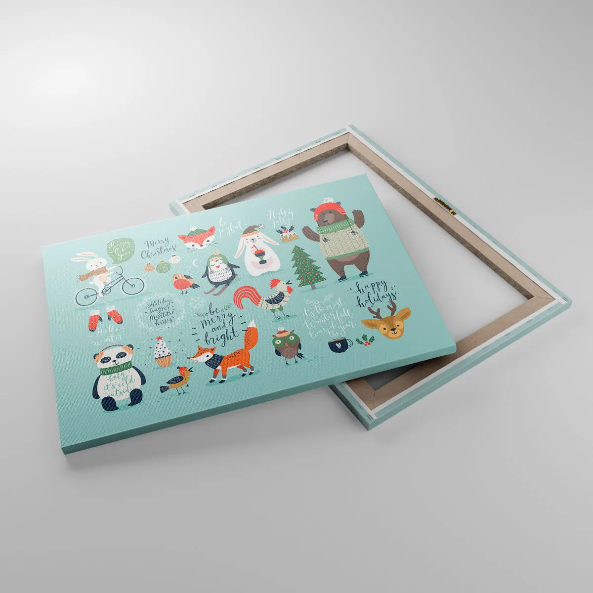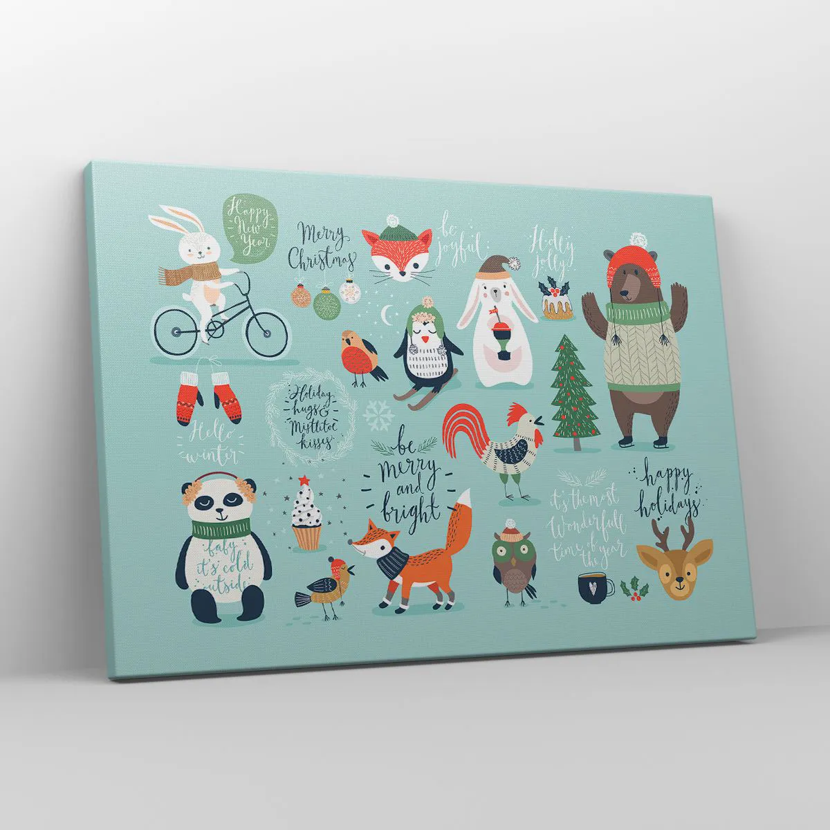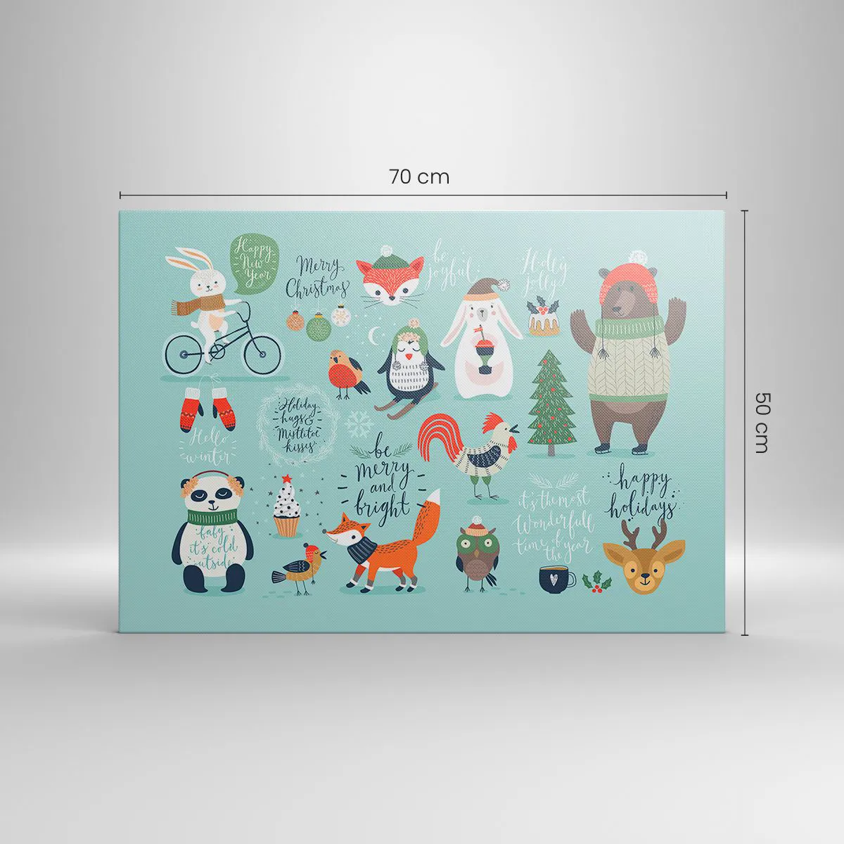 Schilderen op canvas - Kerstillustratie van dieren in een winterse sfeer - 70x50cm - Moge het altijd kerst zijn! - Moderne wanddecoratie voor woonkamer en slaapkamer ARTTOR