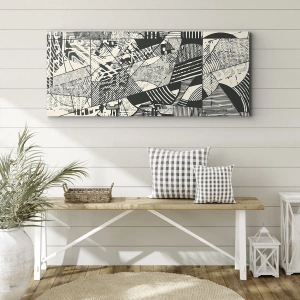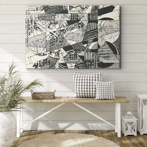 Het canvas wordt over het frame gespannen. De zijkanten en randen zijn bedrukt en zetten het beeld voort. De schilderij is klaar om aan de muur te hangen. Elk product heeft een hanger aan het frame en een montagekit (schroef + pin).