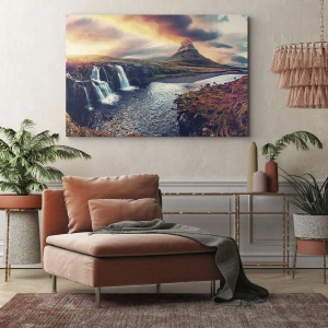 • Landschap, Waterval, Berg, Landschappen, natuur, reizen, Voor op kantoor, voor de studeerkamer, voor de eetkamer, voor de hal, voor de woonkamer, voor de slaapkamer, Kleurrijk, Plein