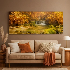 Schilderen op canvas - Boscascade in goud - 70x70 cm