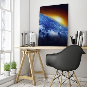 Schilderen op glas - Zonsopgang boven de blauwe planeet - 50x70 cm