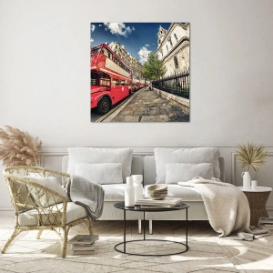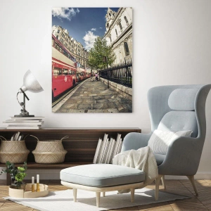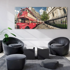 Schilderen op glas - Londense straat in grijs en rood - 120x50 cm