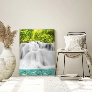 Schilderen op glas - Een schuimige waterval van groen naar azuurblauw - 50x70 cm