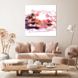 Schilderen op canvas - De rust van de tropen in het rood - 50x50 cm