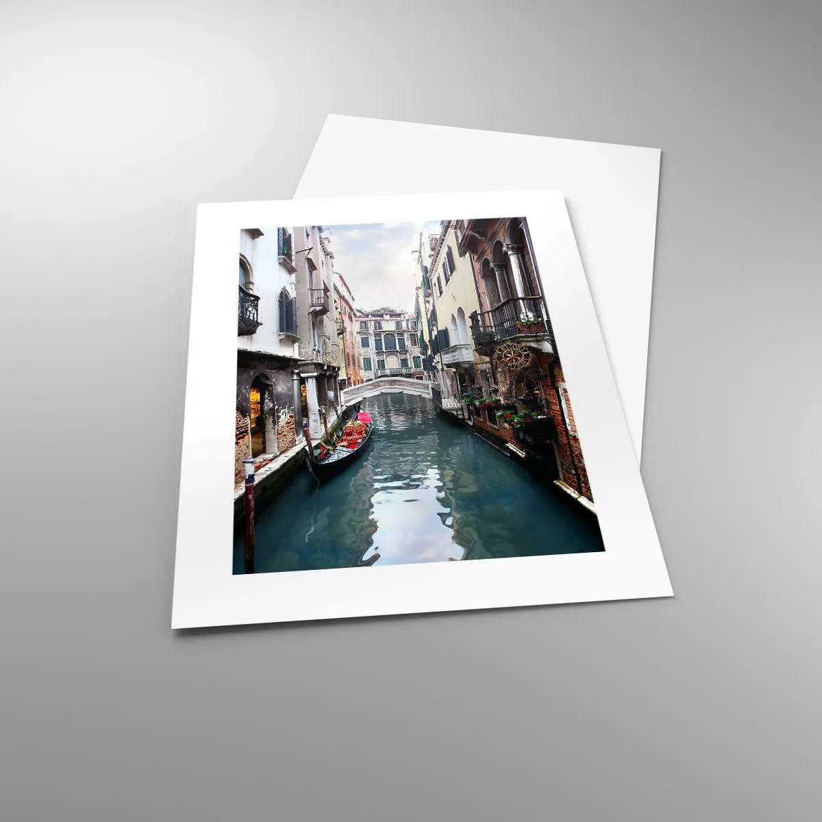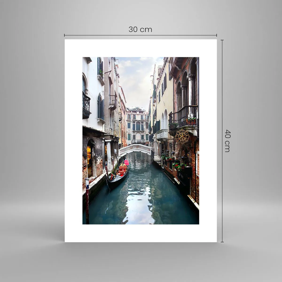 Poster - Venetiaans landschap met een gondel en een brug - 30x40 cm