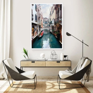 Poster - Venetiaans landschap met een gondel en een brug - 70x100 cm